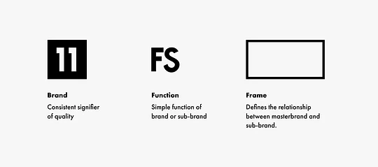 The first step of creating this system is to group different entities based on the function they perform within the company and for customers. For 11:FS this gave us 3 categories – Masterbrand Services, 11:FS Products and 11:FS Presents.