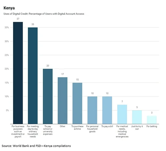 The World bank defines financial inclusion as access to useful and affordable financial products and services, delivered in a responsible and sustainable way - this rose from 26.7% in 2006 to 82.9% in 2019 in Kenya, driven largely by the growth of mobile money and fintech market entrants. A 2019 survey on digital credit found that 13.6% of Kenyans had borrowed loans from a digital lender, citing their convenience and ease of access.