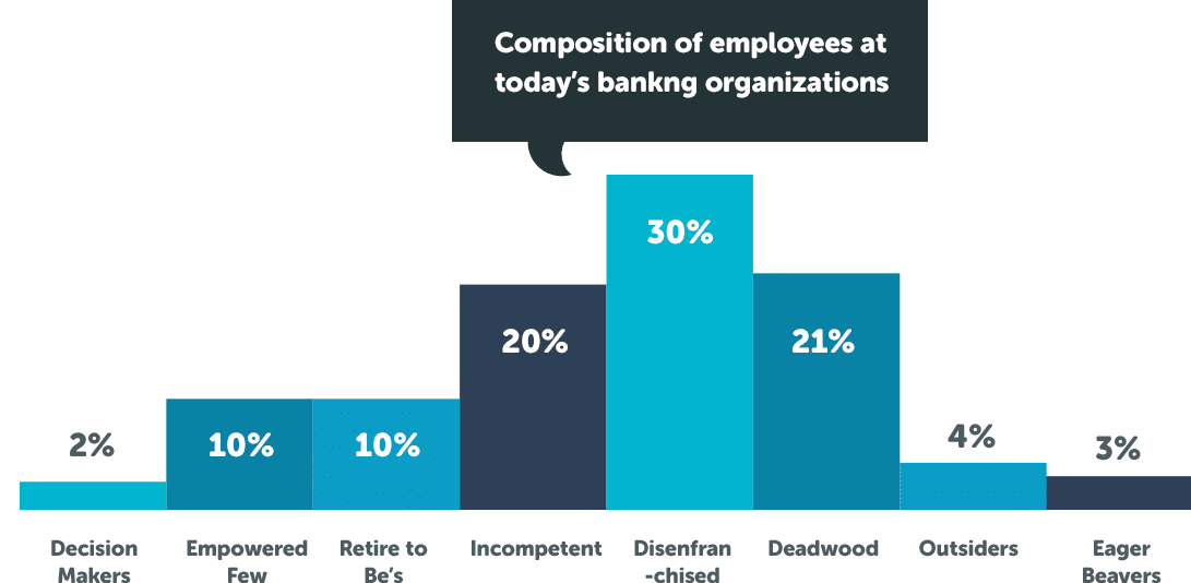 Legacy banking organizations are filled with career bankers who are set in their ways and naturally resist change. These managers can stifle the creativity and innovative spirit of others, impacting the ability for the organization to make needed transitions and remain competitive. What type of banker are you? Banks have been talking about a legacy holding them back for decades, but usually this discussion revolves around IT, core banking systems, distribution channels and traditional operation processes. This article was first published on the Financial Brand in July 2015.